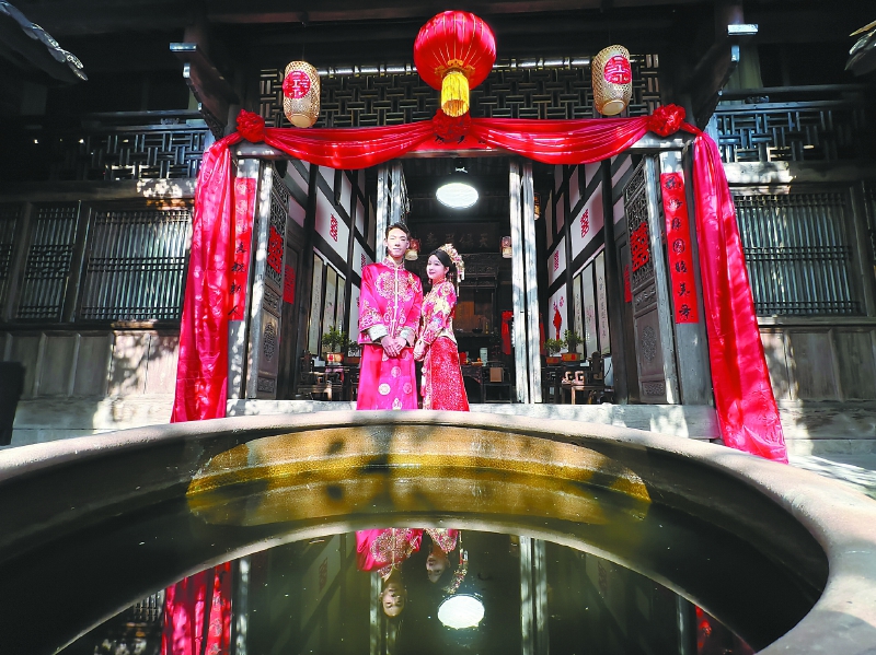 在阆中古城李家大院、本源堂、侯家大院、水码头、杜家客栈,每年都会有很多新人在此举办古色古香的汉服婚礼,越来越多的年轻人对阆中古城的建筑和传统文化产生了浓厚的兴趣,他们将自己人生大事放在了古城院子里举办,这为阆中汉服婚礼提供了商机。每次汉服纪活动,阆中市民政部门都会和主办方举办“汉服集体婚礼”,展示汉唐宋明的婚礼文化。今年汉服纪,阆中市还将在丝绸文化广场举办“婚典策问坊+静态婚礼场景展”,为更多的年轻人和游客提供汉服婚礼策划和服装道具咨询策划服务,以此推动阆中市汉服婚礼产业不断蓬勃兴起。