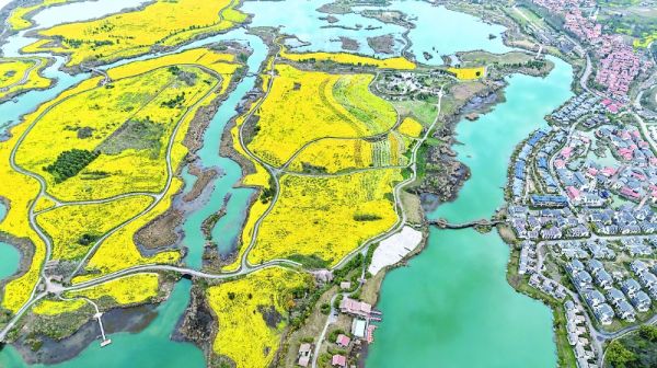 南充新闻网讯(南充市融媒体中心记者 余中华 文/图)3月15日,凤仪湾中法农业科技园内的2000多亩油菜花全面绽放。远远望去,连片的金色花海点缀着生态湿地(如图),在嘉陵江畔绘成一幅春色怡人、生机盎然、活力无限的生动画卷。 近年来,我市不断加强嘉陵江沿线生态保护和治理,取缔非法砂石码头,拆除各类违建,并建设沿江生态湿地公园,实现自然景观和人文景观有机结合,成为优质的市民休闲地和城市会客厅。