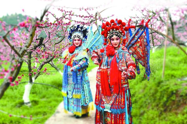 川剧演员走进桃园开展快闪活动。廖桂华 摄