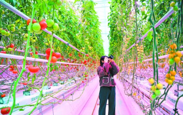 联合采访团走进凤仪湾中法农业科技园番茄智能温室大棚拍摄。南充市融媒体中心记者 余中华 摄