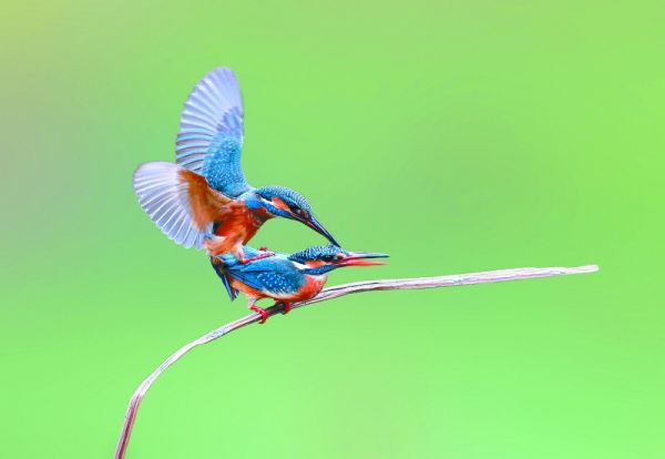普通翠鸟:体型小巧,上体蓝绿色,中央有一条蓝色带纹,下体橙棕色,对生态环境要求较高,是环境指示物种。飞行中发出短促尖锐的“chee,chee”声;处于警戒状态时,其发出的声音则更为粗糙,类似“tjii”声。