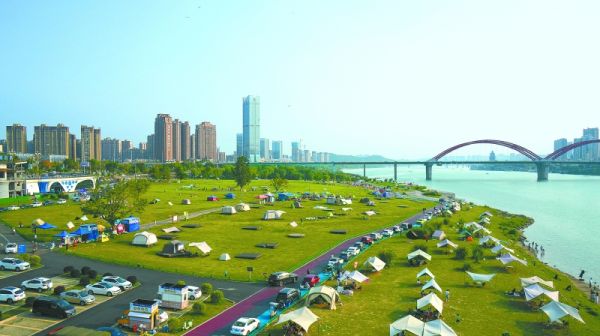 高坪区缤纷水岸湿地公园成为市民露营场所。南充市融媒体中心记者 梁洪源 摄