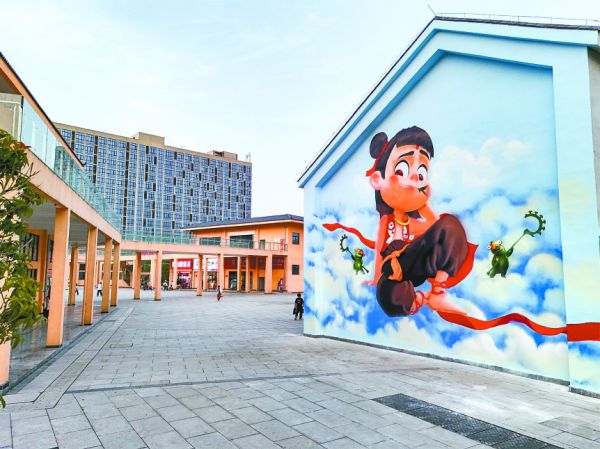4月15日,在南充电影工业职业学院校园内,一幅巨型《哪吒之魔童降世》主题壁画在商业街核心区域出现,迅速成为师生及市民的“打卡点”,吸引人们驻足拍照。