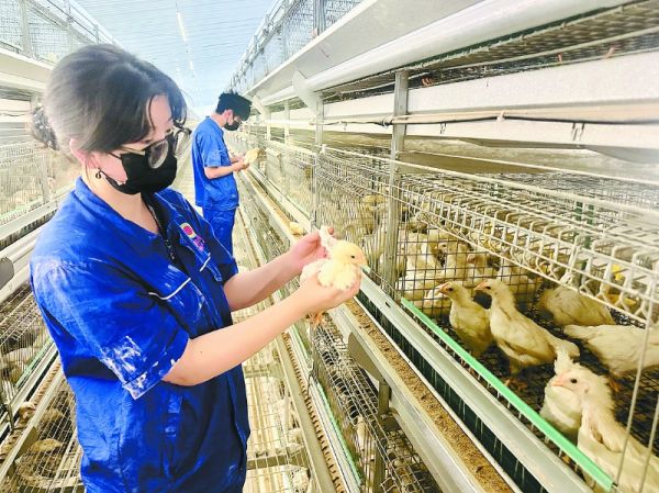 “经过近一个月时间的喂养,第一批鸡苗长势良好。”该公司副总经理赵鹏介绍,目前,该项目第二栋育雏舍的设备正在紧张地安装,预计在8月初完成。今年,他们还将建成饲料生产区,预计在2026年底全部投产。