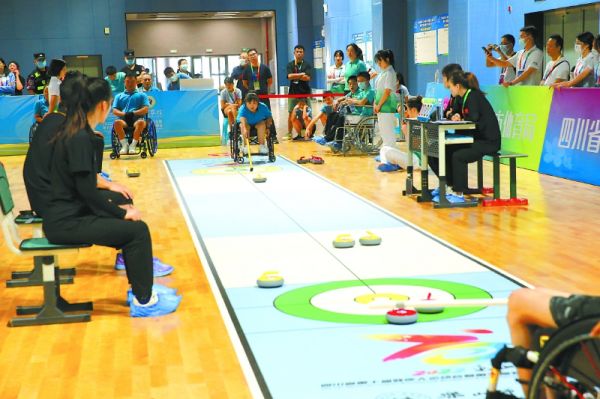 南充运动员参加四川省第十届残运会暨第五届特奥会旱地冰壶比赛。