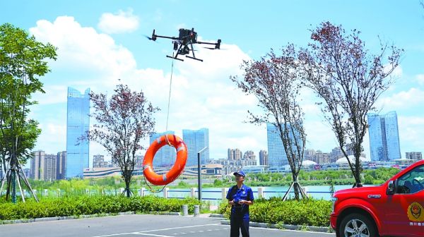 暑假是溺水事故易发期。为进一步增强群众特别是青少年的安全意识,市消防救援支队创新引入科技力量,大力开展无人机救援演练。市消防救援支队应急通信与车辆勤务站通信班班长李辉辉介绍,配备喊话模块的无人机可在汛期进行水域巡视,提醒市民远离危险水域;通过搭载不同模块,无人机还能执行侦查、精准空投救生圈和救援物资等任务,“这有效提升了我们的救援能力和救援效率。”