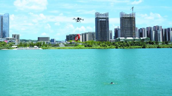 利用无人机巡视喊话、侦查、精准空投救生圈和救援物资