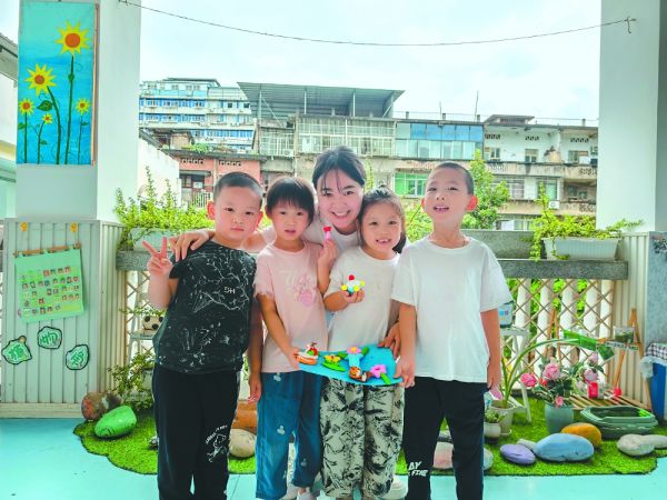 在仪凤街幼儿园,各班孩子纷纷拿出此前精心准备的手工作品送给自己的老师:有的是用彩纸折出的栩栩如生的花朵,有的是用画笔描绘出心中老师的模样,还有的用黏土制作的可爱的小摆件……