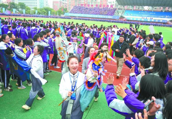 行进式表演走进南充高中嘉陵校区。