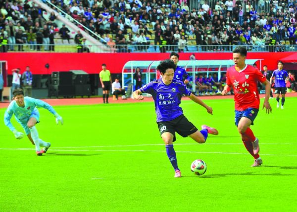 南充丝绸源点队3比2战胜乐山味道非常队,迎来“川超”决赛阶段首胜——