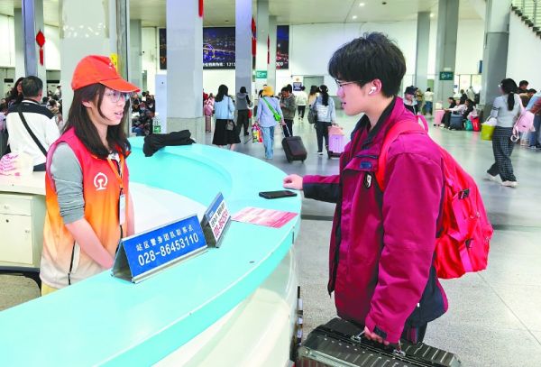 志愿者为旅客提供咨询服务。南充市融媒体中心记者 余中华 摄