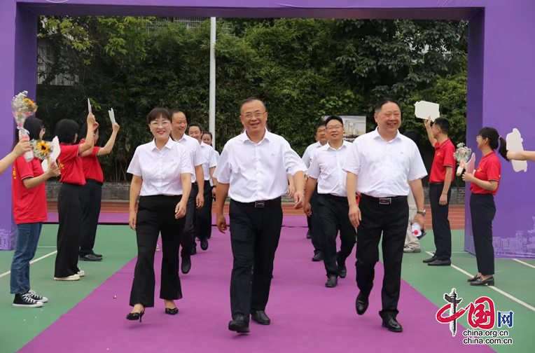 带着满满的祝福,同学们慢慢离开典礼现场;望着同学们渐渐远去的背影,南充高中全体领导、教职工挥动着手中的鲜花,热泪盈眶地目送着同学们离开,祝福他们飞往更加广阔的天地。(陈辉)