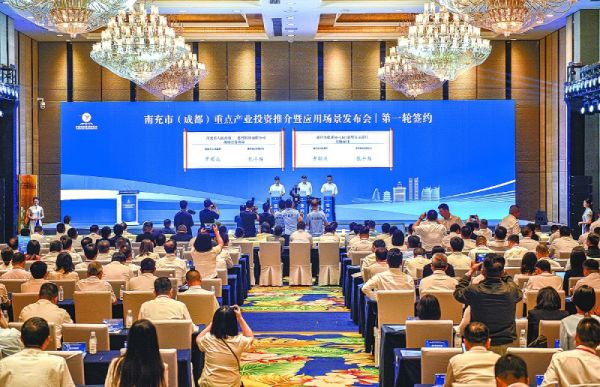 南充市(成都)重点产业投资推介暨应用场景发布会第一轮签约现场。