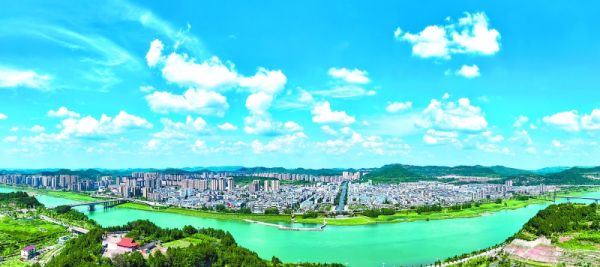 山水相映、城景交融的仪陇县城风貌。