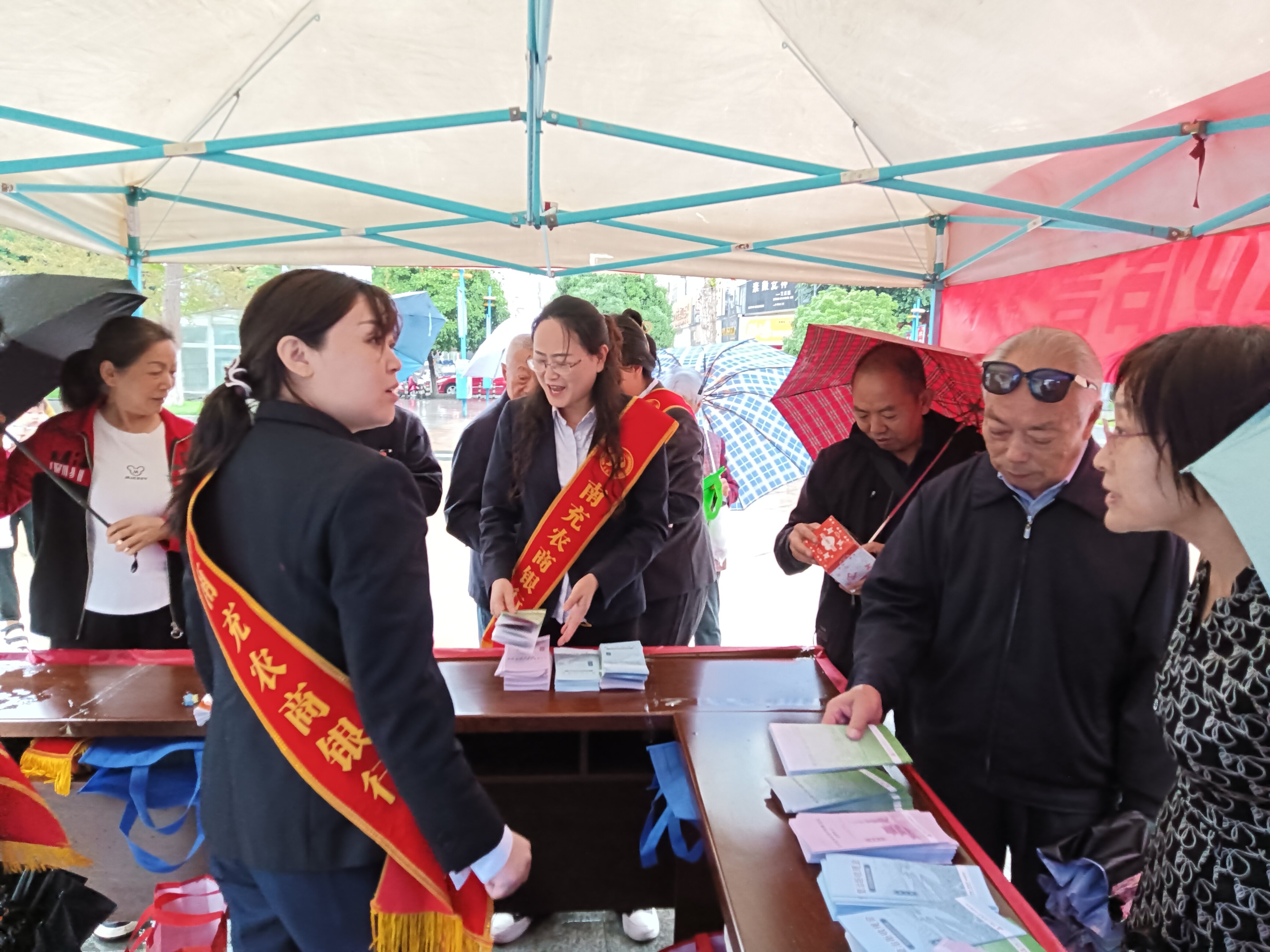 2025年9月23日,尽管天降小雨,但宣传活动仍按计划在南部县人流密集的新世纪广场有序进行。南充农商银行南部支行派出由6名业务骨干组成的专业宣传队伍,通过悬挂醒目标语、设立咨询台、发放宣传资料、现场讲解等多种形式,向广大市民普及人民币防伪知识与防范金融诈骗技巧。活动现场准备的宣传材料内容详实,重点涵盖了第五套人民币主要防伪特征、常见假币识别方法以及近期典型诈骗案例剖析。