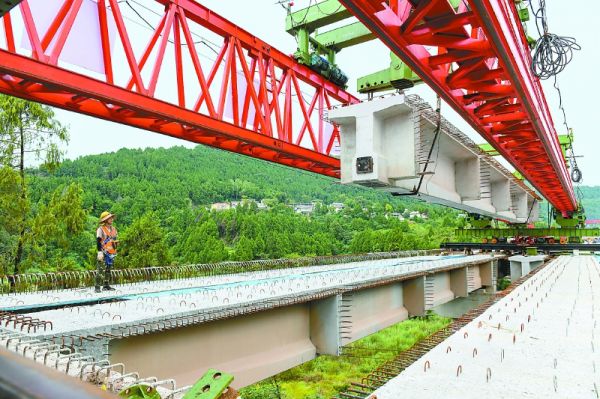 9月26日,在阆中市彭城镇阆(中)营(山)高速连井湾大桥,最后一片重约65吨的预制T梁稳稳安放在桥墩支座上,标志着阆营高速顺利完成首座大桥的预制T梁架设。连井湾大桥长258米,宽约30米,共架设预制T梁114片。