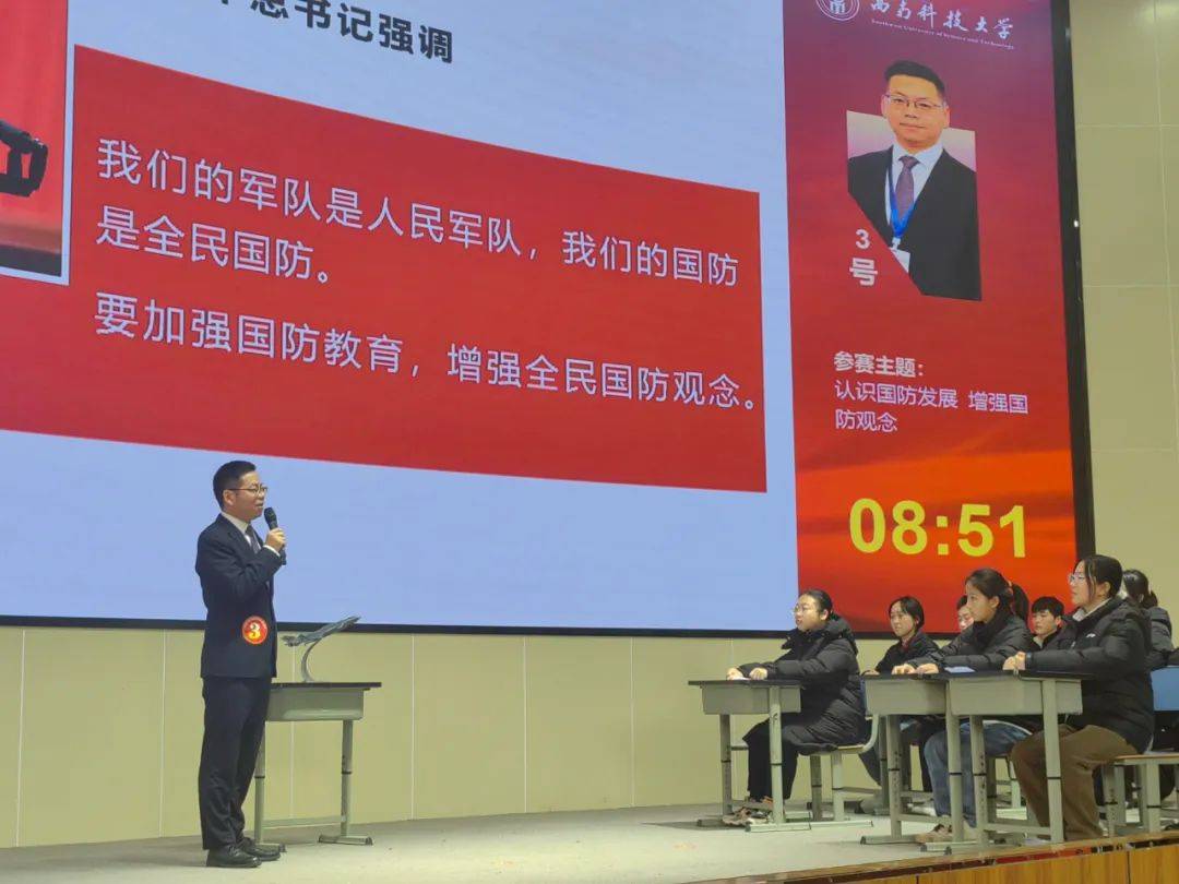 岳鹏程老师以《认识国防发展 增强国防观念》为题,回顾了我国国防历史,讲述了国防的重要性, 传唱了感人的英雄事迹,展现了新时代国防建设的伟大成就。他通过扎实的教学功底、生动的语言和满怀深情的表达,激发了新时代青年的爱国情怀和责任担当,坚定了他们的爱国情、强国志和报国行。