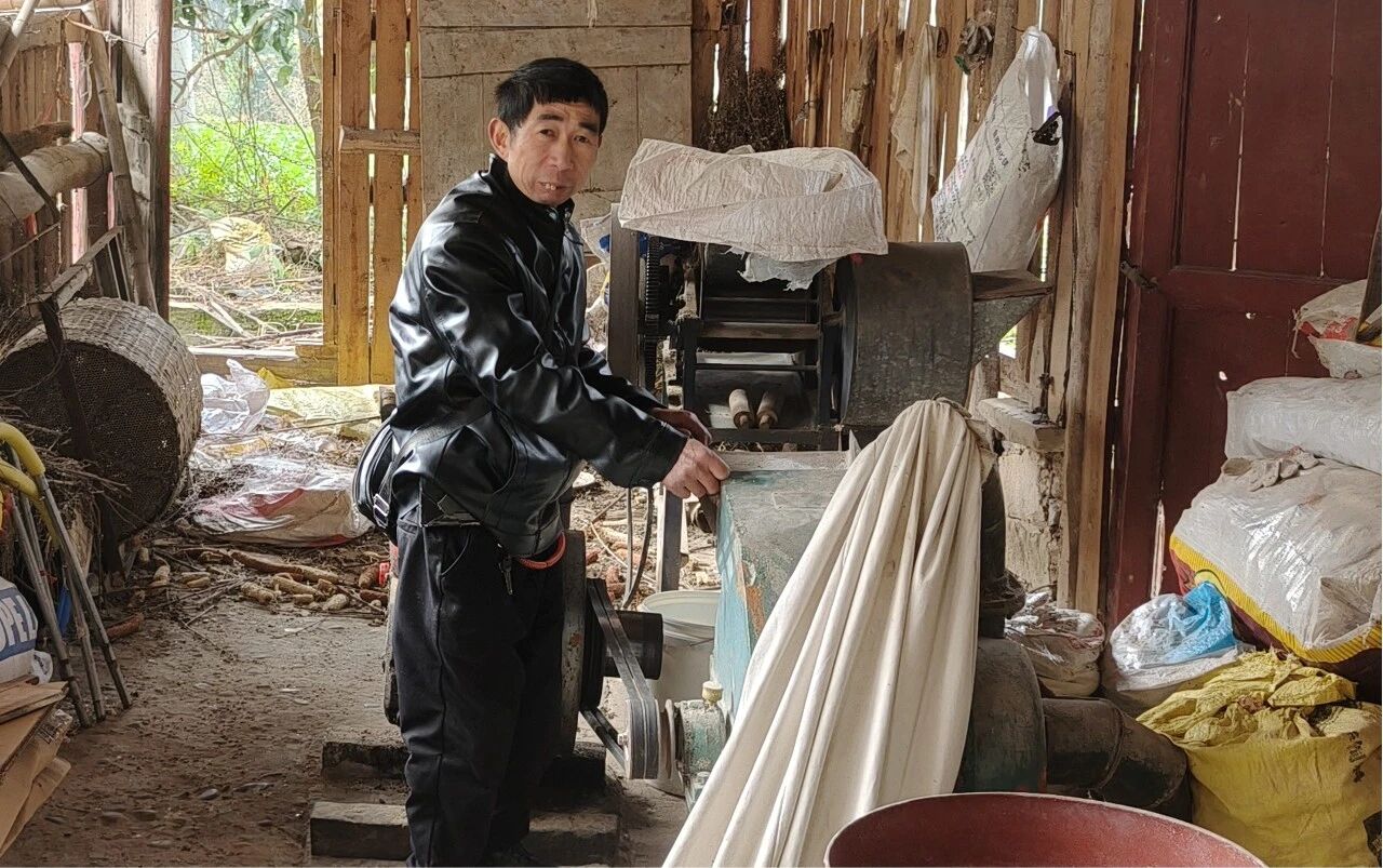 阆中市东北部的初冬,晨雾还未散尽。千佛镇的一处农家小院,已是蒸汽氤氲、豆香满屋。57岁的杨齐坐在矮凳上,右手按下粉碎机的电源开关,他的妻子任小荣则在一旁,细致地将浸泡好的黄豆一勺勺舀进进料口。机器悠悠转动,乳白的豆浆缓缓流淌,像极了这对夫妇三十年来,虽缓慢却从未停歇的人生。