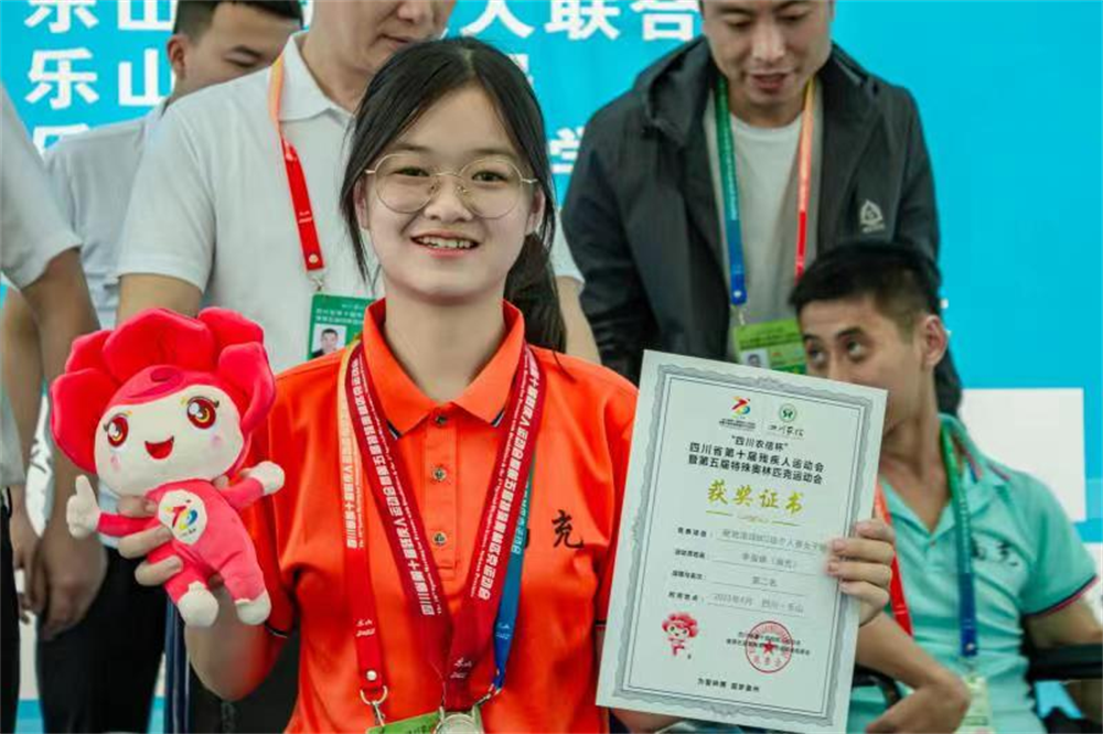 赢在赛场,用金牌证明实力。近年来,阆中健儿捷报频传:2023年省残特奥会中摘取6金8银5铜,省第四届全民健身运动会特奥滚球赢得双打金牌;2024年四川特奥滚球取得2金2银,全国特奥足球收获第三名;2025年全国残特奥会足球夺取第二名……一块块奖牌,是孩子们用汗水浇灌出的生命强音,证明了残缺的翅膀同样可以翱翔。