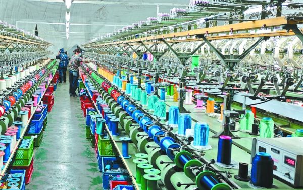四川依格尔纺织品有限公司繁忙的生产车间。