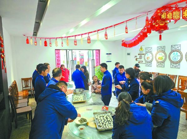最热闹的还是包汤圆环节。食堂里,消防员和家属们围在一起,揉面团、包馅料、搓汤圆,其乐融融。“这是我第一次和儿子一起包汤圆。”消防员蔡汶轩的母亲笑着说:“虽然他不能回家过年,但能在这里团聚,感觉也特别温暖。”热气腾腾的汤圆出锅后,大家围坐在一起品尝。餐桌上,浓浓亲情在热气中升腾。随后,消防员还与家属们一同观看了精彩的文艺演出。