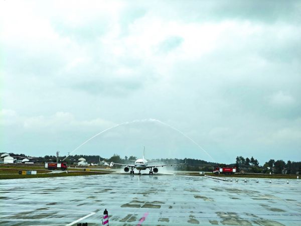 3月30日中午,南充高坪机场热闹非凡,一场盛大的“水门仪式”在此举行。随着两辆消防车喷射出的巨大拱形水幕,中国国际航空CA8595航班在众人的期待中,缓缓降落在跑道上,平稳滑行至指定位置。这标志着国航南充至温州航线正式开通,为两地之间架起了一座便捷的空中桥梁。这也是中国国际航空首次在南充机场执飞航班。首航当日(3月30日),南充至温州出港航班搭载旅客177人,客座率高达96%,展现出了强劲的市场需求。此次执飞温州往返南充航线的机型为空客A321,宽敞舒适的客舱为旅客们提供了更加惬意的飞行体验。该航线班期为每周一、三、五、七,具体航班时刻如下:温州龙湾机场12:00起飞,14:45抵达南充高坪机场;从南充高坪机场返程时,15:40起飞,17:50抵达温州龙湾机场。
