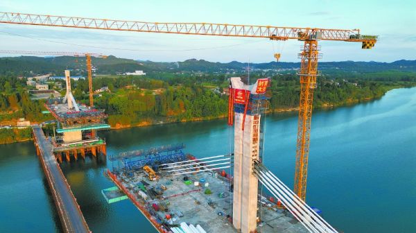 阆营高速公路嘉陵江特大桥主塔顺利封顶