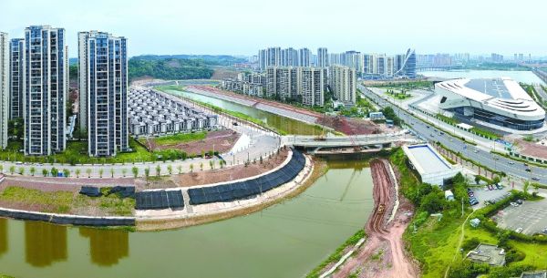 南充新闻网讯(南充市融媒体中心记者 余中华 文/图)顺着螺溪河嘉陵江入口向上游行走,全新打造的生态防洪堤即将全新亮相。7月3日,记者沿着嘉陵江与螺溪河交汇处溯流而上,一睹螺溪河生态防洪堤的崭新风貌。蜿蜒的螺溪河宛如一条碧绿丝带,穿梭于城市之间,两岸防洪堤建设已临近尾声,精心设计的坡面绿化造型错落有致,不仅显著提升了沿线居民的生活环境,更与南充国际会展中心、嘉陵江两岸风光相互映衬,勾勒出一幅动人的城市画卷。