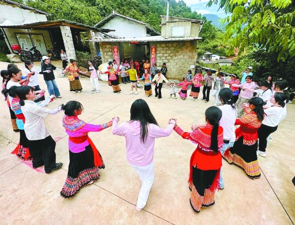 饭后,音乐声响起,乡亲们与志愿者手拉手,跳起了傈僳族人特有的打跳舞。临别时,金高峰拍着胸脯对张正祥保证:“等文星结婚时,我们组团来喝喜酒。”