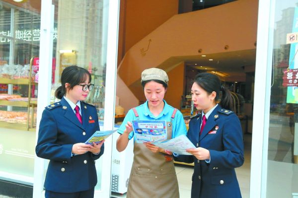 嘉陵税务青年志愿者向商家宣传税费优惠政策。