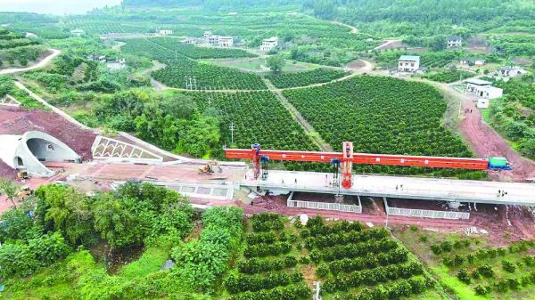 10月29日下午,在位于高坪区龙门街道空洞山村的成达万高铁项目建设现场,随着架桥机缓缓下降,不到10分钟,一孔箱梁就被严丝合缝地放置在桥墩上。