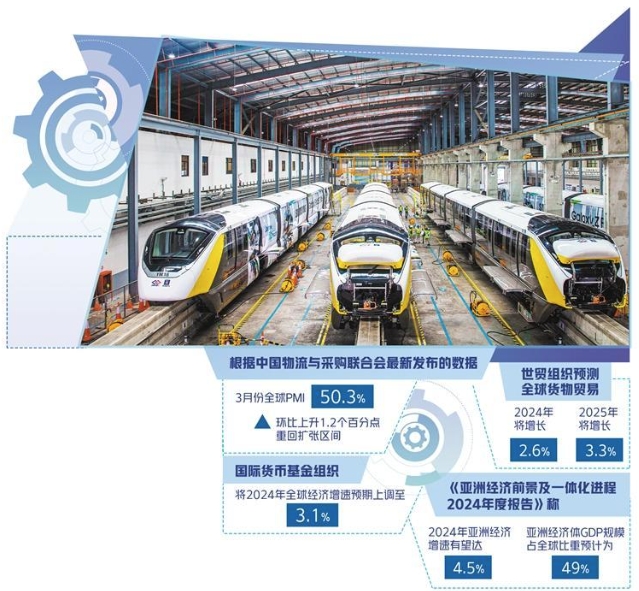 数据变化显示,亚洲制造业增速继续领跑其他区域。中国、印度和东盟主要国家对亚洲经济的增长仍发挥着重要引领作用。博鳌亚洲论坛发布的《亚洲经济前景及一体化进程2024年度报告》称,2024年亚洲经济增速有望达4.5%,亚洲经济体的国内生产总值(GDP)规模占全球比重预计为49%。相较于其他区域,亚洲各国更加注重区域合作,发展环境更为包容和开放,发展的韧性更强。