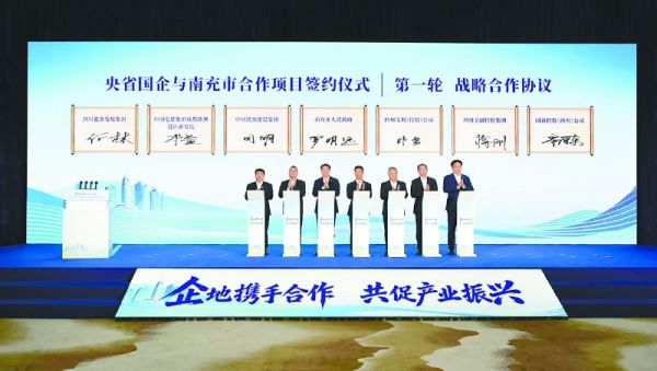 签约现场,南充市人民政府与四川能源发展集团有限责任公司、中国电建集团成都勘测设计研究院有限公司、中国能源建设集团有限公司、四川发展(控股)有限责任公司、四川金融控股集团有限公司、国新控股(四川)有限公司签署战略合作协议。同时,相关县(市、区)人民政府、经开区及市属、县属国企分别与相关央省属国企签署合作项目投资协议。