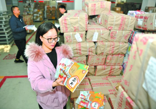 2月11日,新学期即将开学,在新华文轩出版传媒股份有限公司南充市各分公司教材仓库,工作人员抓紧时间清点、分类、打包、转运2025年春季学期教学用书。仓库外,一辆辆挂着“教材急运”字样的货车不断驶离,马不停蹄运送教材。该公司相关负责人介绍,自2月5日以来,该公司各部门人员齐上阵,投入2025年春季教学用书发放工作,确保将近1100万册教学用书按时发放到全市1200余所中小学校、中职校和幼儿园近80万名学生手中。 南充市融媒体中心记者 余中华 摄影报道