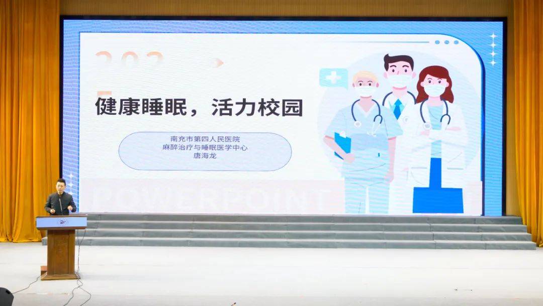 三月春风暖,桃李花开映新颜。为进一步加强学校健康教育工作,助力学生身心健康成长,2025年3月12日下午,南充高中临江校区在艺术中心举行健康教育活动。本次活动由南充高中卫健科和临江第六党支部联合开展,南充市第四人民医院党委委员、副院长沈静,南充市第四人民医院麻醉医学科副主任、麻醉治疗与睡眠医学中心主任唐海龙,南充高中党委委员、工会主席、临江校区负责人陈祺文,临江校区副校长尹海波,相关科室干部出席活动,南高临江校区第六党支部部分师生参加活动。活动由南高临江校区第六党支部书记刘敬武主持。