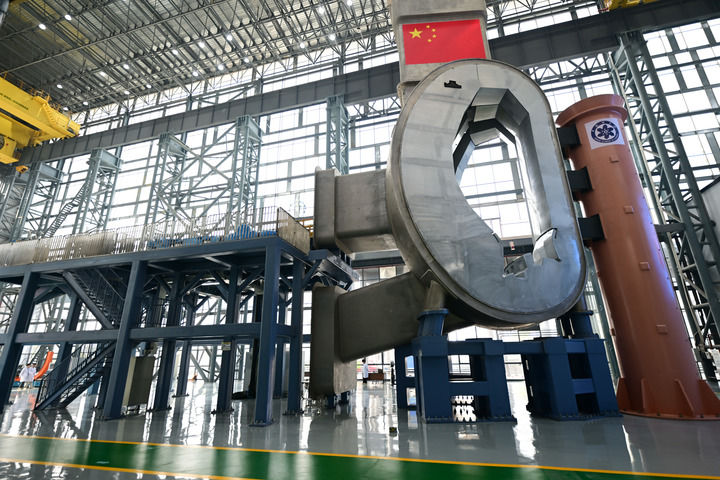 中国科学院合肥物质科学研究院大科学团队研制的聚变堆主机关键系统综合研究设施八分之一真空室及总体安装系统主体平台(2025年3月9日摄)。新华社记者 周牧 摄