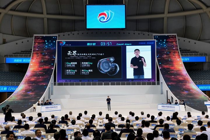 在中国国际大学生创新大赛(2024)冠军争夺赛现场,西安电子科技大学的“无界BOUNDLESS——开创民生保障通联新纪元”项目在进行展示(2024年10月15日摄)。新华社记者 刘颖 摄