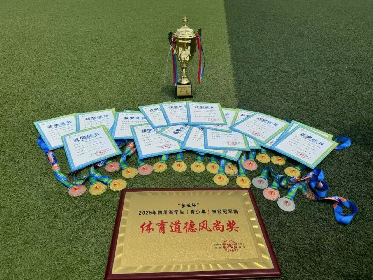热烈祝贺南充高中田径队在2025年四川省学生(青少年)田径冠军赛中,以卓越的竞技实力和昂扬的精神风貌,斩获7金2银5铜的辉煌战绩!1人打破赛会纪录,4人达到国家一级运动员标准,更以团体总分第二名的优异成绩,捧回体育道德风尚奖!这份沉甸甸的荣誉,是南高人拼搏精神的生动写照,更是南充高中体育教育成果的耀眼彰显!