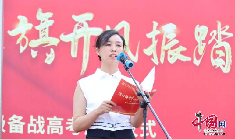 接着,高2022级年级组组长陈昀作备考指导讲话。他告诉同学们要果敢前行,奋斗不止,夺取高考的胜利,为自己的人生添彩。全体高三老师在党支部书记何洋的带领下郑重宣誓,根植三尺讲台,秉承“诚勇”校训,齐心协力、共铸辉煌。