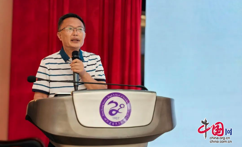 王尚明在开班仪式上致辞。他指出,南充高中建校之初就名师荟萃,为学校的高质量发展奠定了坚实的基础,近年来,坚定不移地实施人才强校战略,人才队伍不断壮大。他强调,面对“双减”“三新”改革和“一校五区”等新形势、新挑战,学校需要更多“高人”引领。他要求,老师们要专注学习与研究、积极交流与分享、深入思考与实践,为百年“南高梦”增添动力,为擦亮“南高”品牌贡献更大力量。