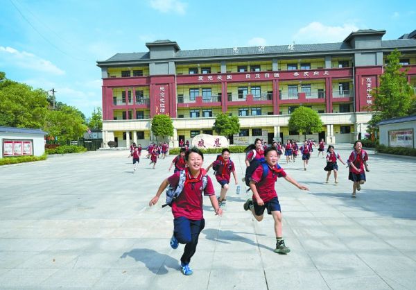 于是,教学楼前、运动场旁的空地被打造成了感恩广场。广场上的“感恩石”正面记录下浙江援建的时间,背面镌刻的《之江小学赋》感念着援建的恩情。广场两边的文化墙,左边以“之江情”为主题,通过浮雕、文字和图片,让师生铭记浙江援建恩情;右边以“中华魂”为主题,既有衔环结草、诸葛亮报恩等中华传统文化典故,又讲述朱德元帅、罗瑞卿大将的传奇故事。除此之外,学校的教室、走廊、食堂等地,也随处可见感恩的标识和名人名言。