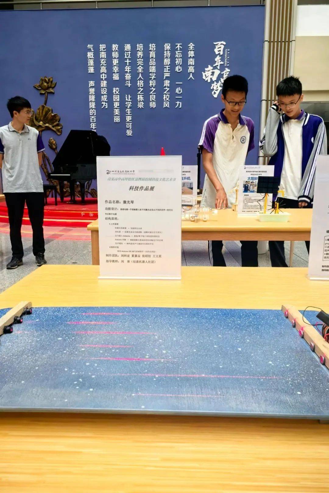 5月13日,南充高中高坪校区第四届校园科技文化艺术节迎来重头戏——“科技引领未来·创新成就梦想”主题科技作品展盛大开展。本次活动由校区团委携手物理组、信息组精心策划,集中呈现初、高中学生自主打造的30余项创新作品,吸引全校师生齐聚一堂,共赴这场科技盛宴。