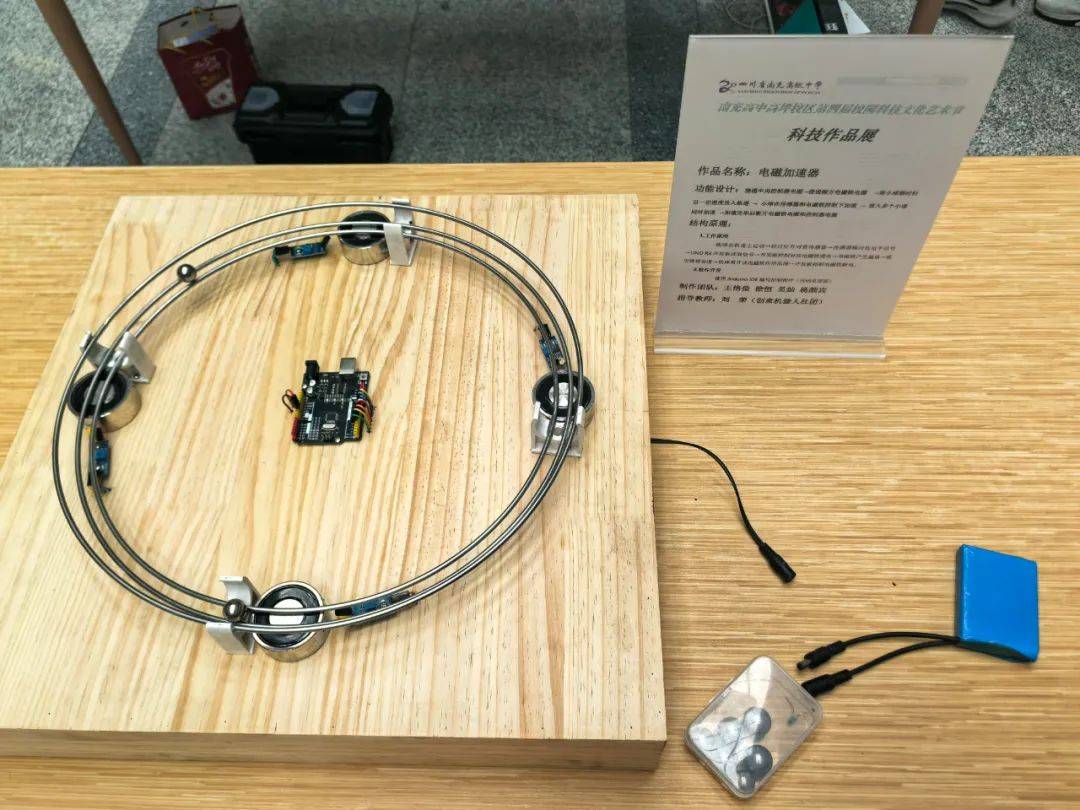 展品内容丰富多样,覆盖能源、环保、工程等多个领域。电磁加速器通过环形磁场直观呈现洛伦兹力原理,让抽象的物理知识变得生动易懂;可回收水火箭利用气压反冲原理,成功飞至30米高空,展现了学生们对物理原理的巧妙运用;温差发电装置则利用冰水与沸水的温差成功点亮LED阵列,为能源利用提供了新的思路。此外,创意纸电路将导电墨水绘制成校园风景画,兼具艺术与科技之美;张力结构桌子以独特的力学设计颠覆传统认知,展现了学生们的创新思维;激光琴通过光电效应奏响《茉莉花》旋律,为现场增添了一份浪漫的氛围。手摇发电机、空气动力小车等经典模型经过改良后焕发出新的生机,静电流动演示仪的趣味实验更是成为师生们的打卡热点。