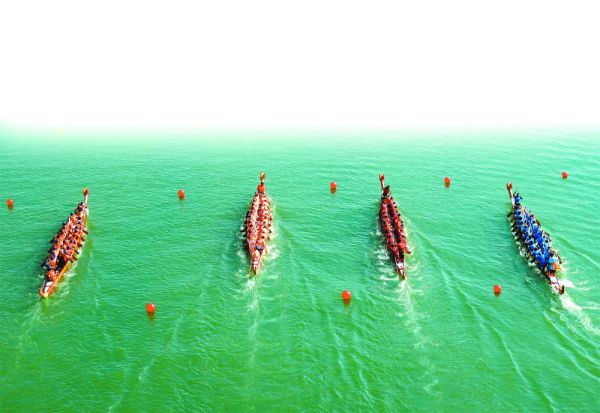 活动现场的气氛紧张而热烈,江边观众的欢呼声和加油声一浪高过一浪,热闹火爆的场面吸引了众多游客市民拍照留念,分享美好的精彩瞬间,共享欢乐的节日气氛。