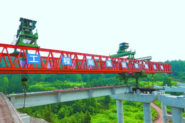 阆营高速公路由中国铁建昆仑投资集团投资建设,全长约103公里,采用双向四车道高速公路标准,主线设计速度100公里/小时。全线共设桥梁77座、隧道10座,桥隧比30.6%,需架设T梁8482片。此次首片T梁架设的连井湾大桥全长258米,设3联预应力T梁结构,需架设T梁114片。