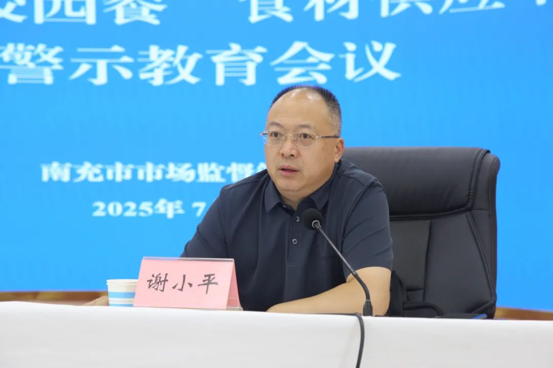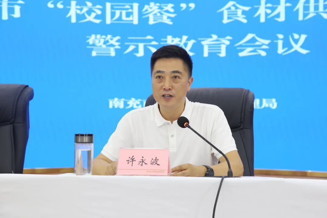 7月16日下午,南充市食品安全委员会办公室召开全市“校园餐”食材供应单位警示教育视频会议,通过案例警示、责任宣讲、考试督学,全面拧紧校园食材“安全阀”。市教育和体育局副局长谢小平,市市场监管局药品安全总监许永波、食品安全总监王华,市、县(市、区)市场监管局、教育和体育局相关负责人、全市学校及幼儿园食材供应单位代表400余人参加会议。警示教育会议
