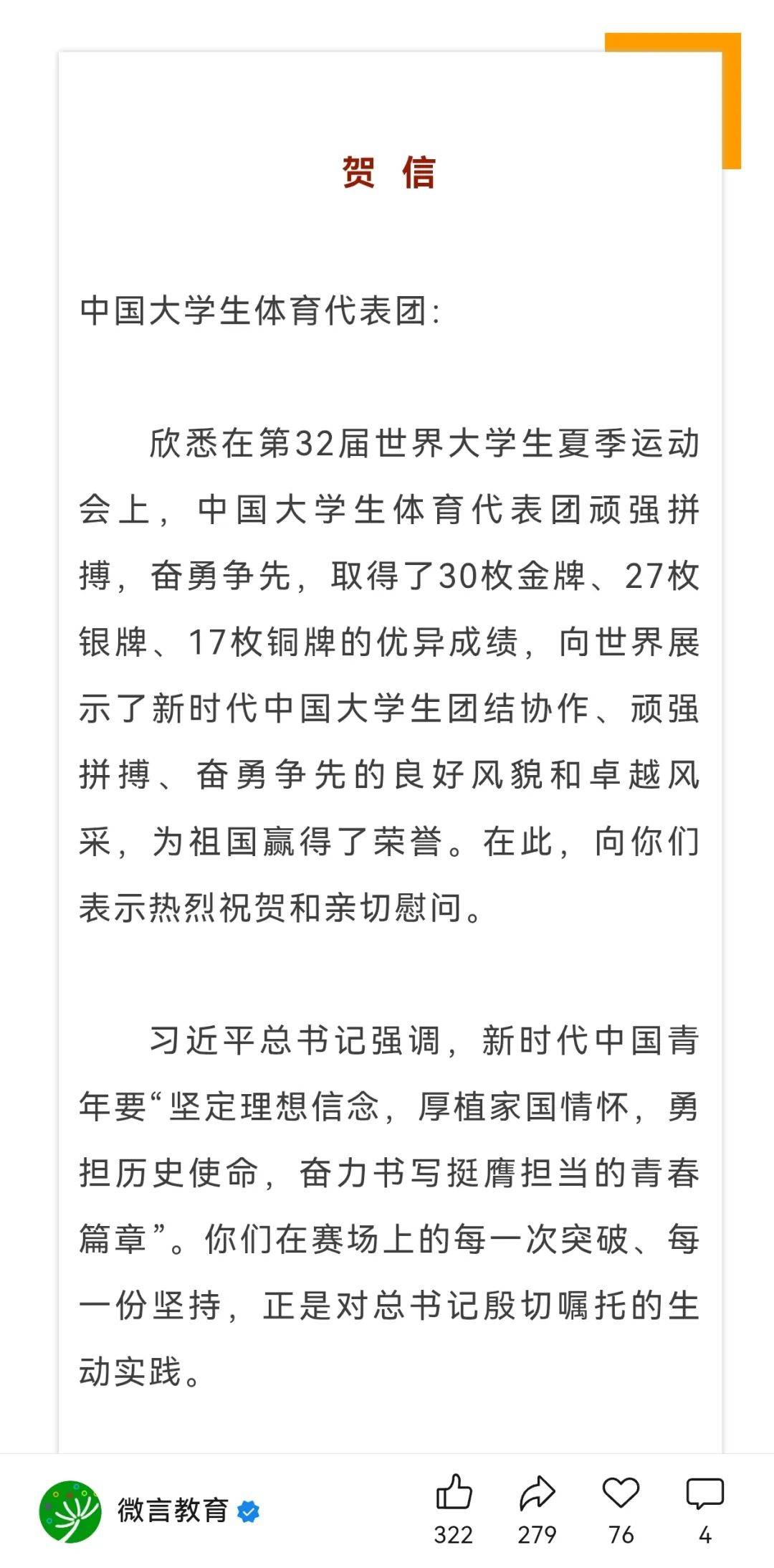 比赛已经结束,新的征程又将开启。希望三位校友继续发扬“使命在肩、奋斗有我”的精神,将大运赛场的荣耀转化为奋进新征程的不竭动力,再接再厉、久久为功,不断争创新成绩、创造新辉煌,为强国建设、民族复兴伟业再立新功。
