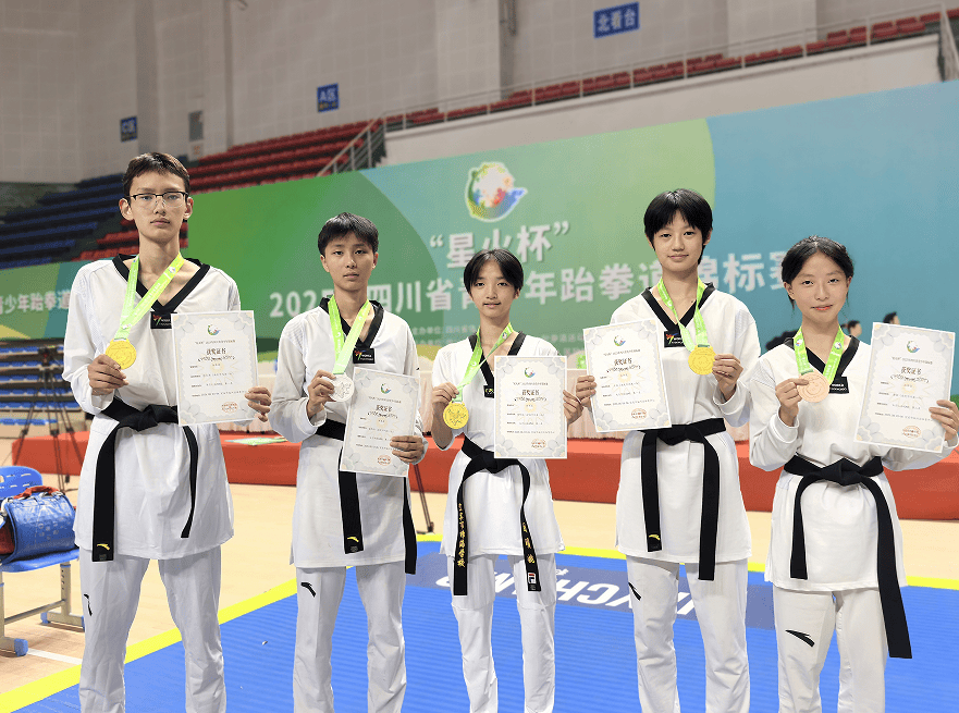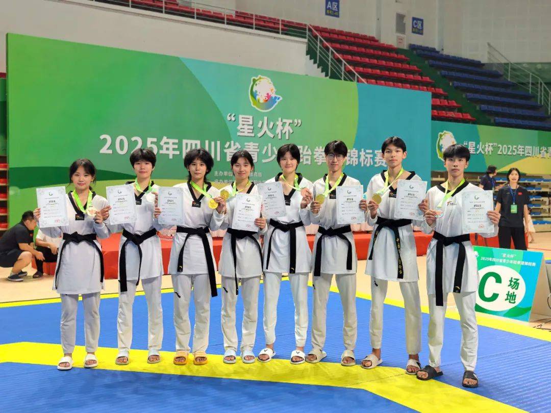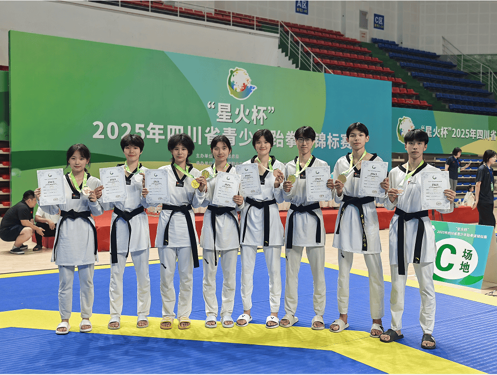 近日,由四川省体育局主办的“星火杯”2025年四川省青少年跆拳道锦标赛在宜宾市举行,南高跆拳道队的同学们在1012名参赛选手中脱颖而出,斩获金牌8枚、银牌5枚、铜牌4枚和5个第五名,12人达国家级运动员称号,其中一级运动员称号6人,二级运动员称号6人。