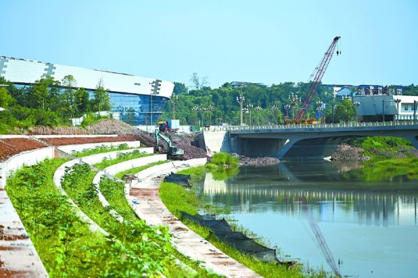 值得一提的是,在螺溪河与嘉陵江交汇处,新建的亲水平台已现雏形。它与南充国际会展中心无缝衔接,将形成“观江—游河—赏绿”景观链。待防洪堤步游道对市民开放后,将配备休憩驿站、健身器材等,满足市民休闲健身需求。(杨波 文/图)