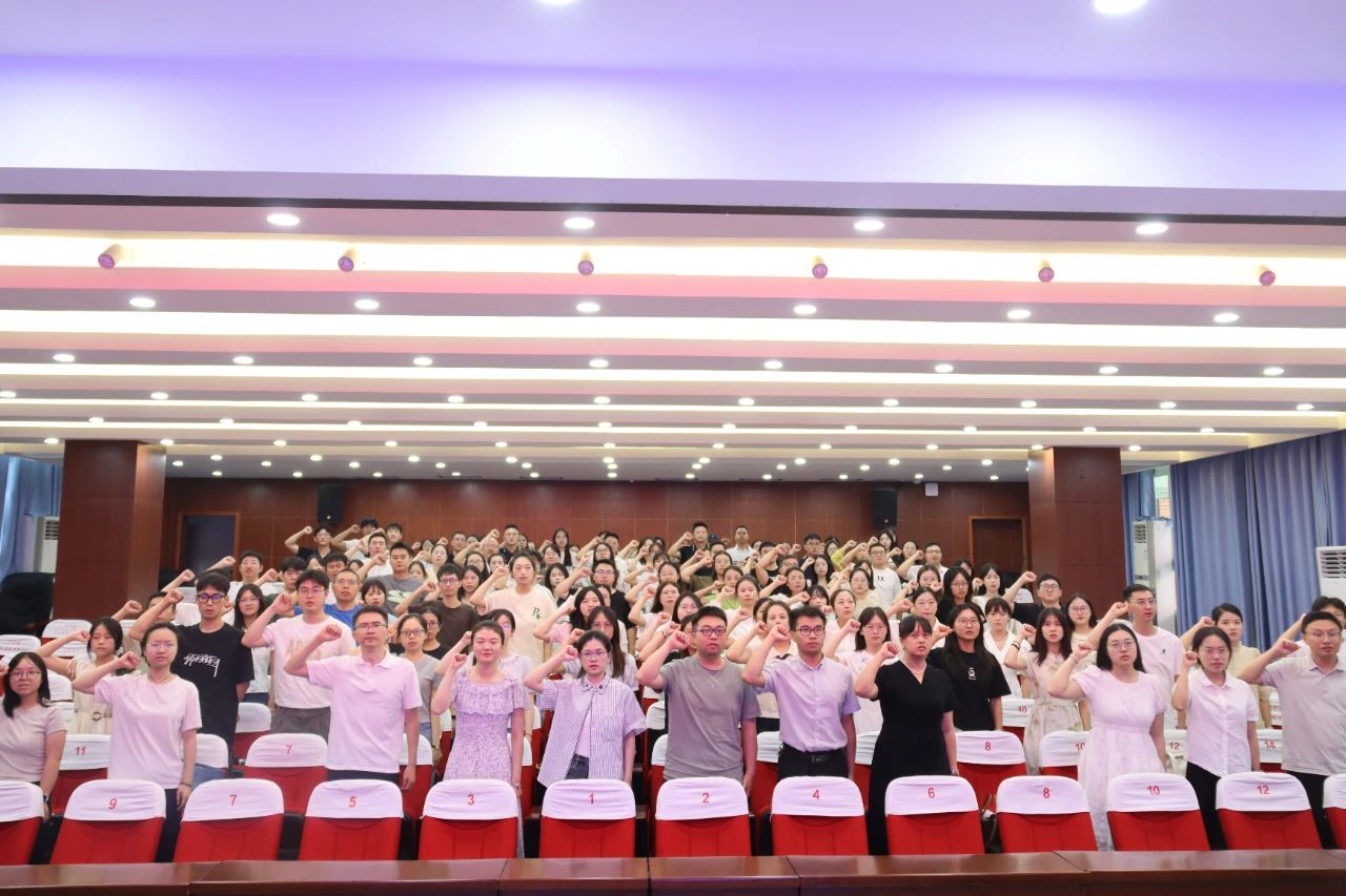 20日上午,“我志愿成为一名人民教师,忠诚党的教育事业……”——136名新教师面向国旗,高举右拳,用铿锵有力的誓言许下了对教育事业的忠诚承诺。激昂的宣誓声在会场回荡,每一位新教师都目光坚定、神情庄重,展现出投身教育、为国育才的满腔热忱。这一刻,仪式感与使命感交织,深深烙印在每位教师心中。铿锵誓言不仅代表了职业的起点,更标志着立德树人责任的郑重担当,为他们踏上新征程注入了坚定的精神力量。